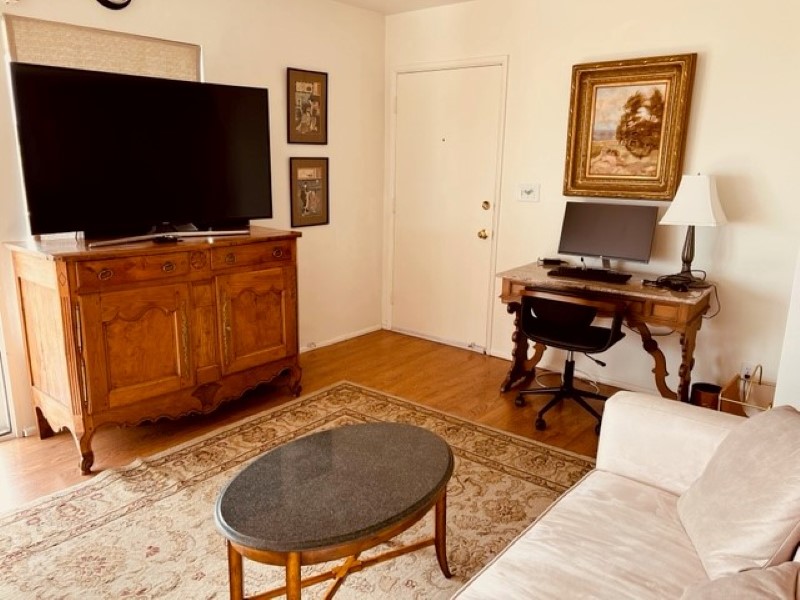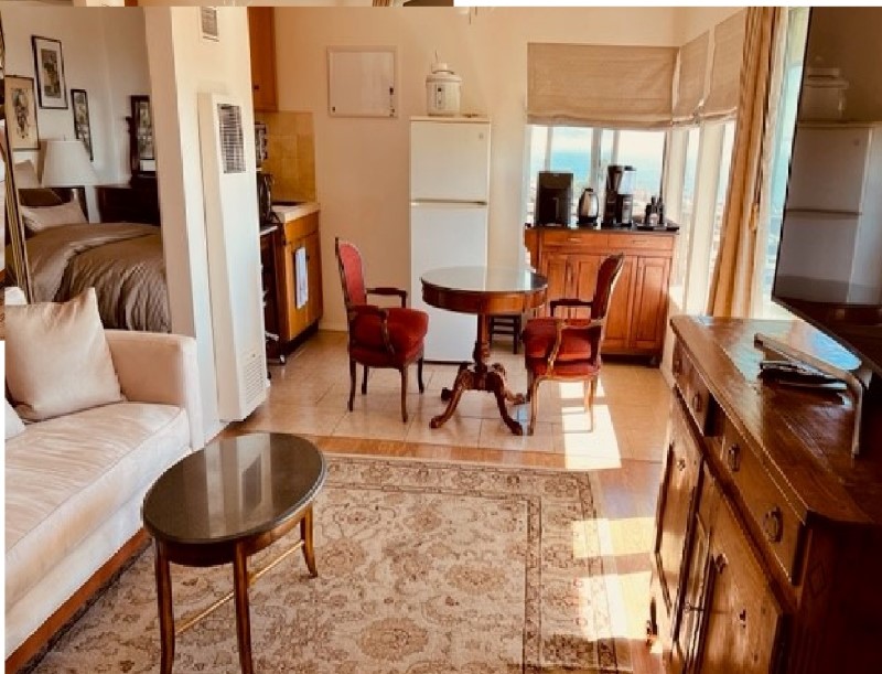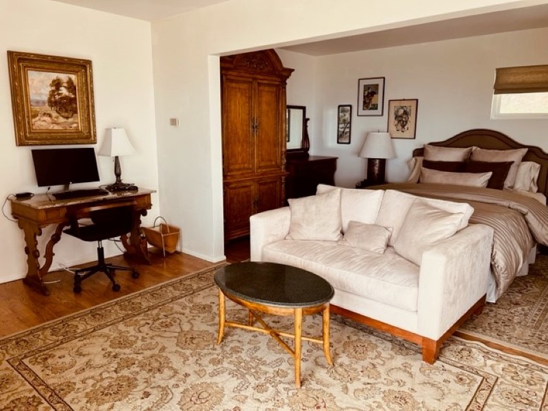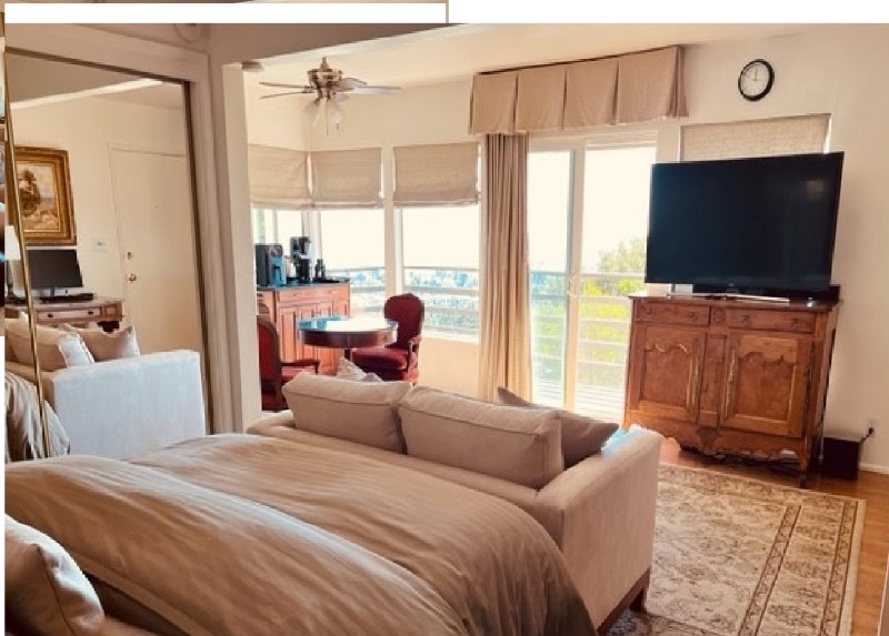 This charming 1 bedroom/studio with small kitchen offers amazing expansive ocean views from every room! Ocean views even from the bathroom with shower and tub! Wrap around balcony with BBQ extends the living space to the exterior. Take in the fresh ocean breeze off the Pacific to further compliment the California lifestyle Santa Barbara has to offer. Very centrally located five minutes to the beach and downtown Santa Barbara where there is a host of fabulous restaurants, shopping, theaters, art museums and many points of interest. Washer/dryer for your use is in the garage, and there is assigned off street parking. Ideal for one professional or retiree. Relax by the beautiful koi pond, water features and gardens below, it is simply breath-taking! This tranquil retreat becomes a wonderful home away from home with many happy returns.
