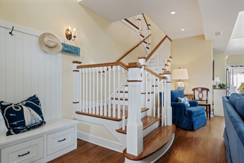 This lovely beach house is just minutes to the beach off of Shoreline Drive. This newly remodeled home offers a wonderful retreat or perfect for a family gathering. The spacious living room downstairs opens up to a beautiful front patio that provides a very relaxing setting to hang out and enjoy and you breathe in the fresh salt air. The private back yard offers a private Jacuzzi, dining patio table and BBQ, all are ideal for Al Fresco dining. Each bedroom offers its own bathroom providing a comfortable suite for all that stay in this beautiful home. There is a gourmet kitchen for the chef at heart. Upstairs offers a family room and two built-in workstations that are ideal for those that need to work remotely. The family room offers a fireplace, Smart TV and a queen sleeper sofa for last minute guests.