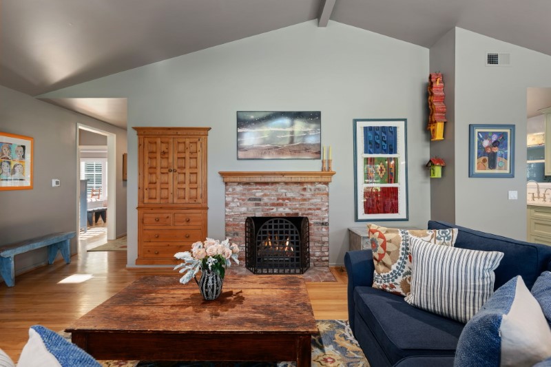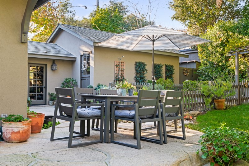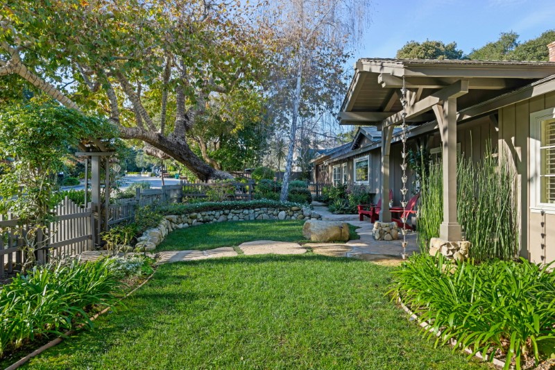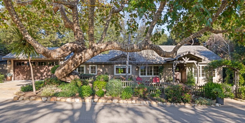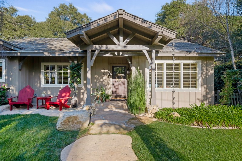 Montecito Oaks Creekside located in a neighborhood along Montecito Creek and surrounded by an abundance of sprawling and mature oak trees is just a ten-minute walk away from the restaurants, art galleries, and retail shopping of Coast Village Road in one direction and Butterfly Beach in the other. This charming ranch style three-bedroom, two and a half-bath home exudes a welcoming and family friendly aesthetic. It showcases a large beautifully landscaped backyard, an oversized living room with a brick fireplace, a private primary bedroom suite, a newly remodeled kitchen with an island and bar seating, all decorated with folk art and cottage style pine furniture, including down reading chairs, and absolutely provides an experience that rivals the nicest hotel.