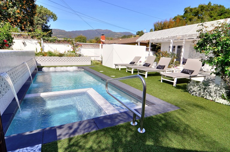 This Mid-century modern 1960s ranch has been meticulously updated to showcase the best of what modern living is today. The home offers a bright, open kitchen/living/dining room inside and a fabulous built-in kitchen/bar area/wine fridge/pizza oven and fire table outside. The pool, spa and covered cabana facing the mountains are enclosed in a private sunny garden. The home is located in a quiet neighbourhood in the foothills but less than 15 minutes' drive to shops and upscale restaurants on State St., beaches/cafes/sailing at the Harbor, wine tasting and hip hot spots in the Funk Zone or UCSB. At Sea Smoke, you will truly enjoy the California indoor/outdoor living experience.